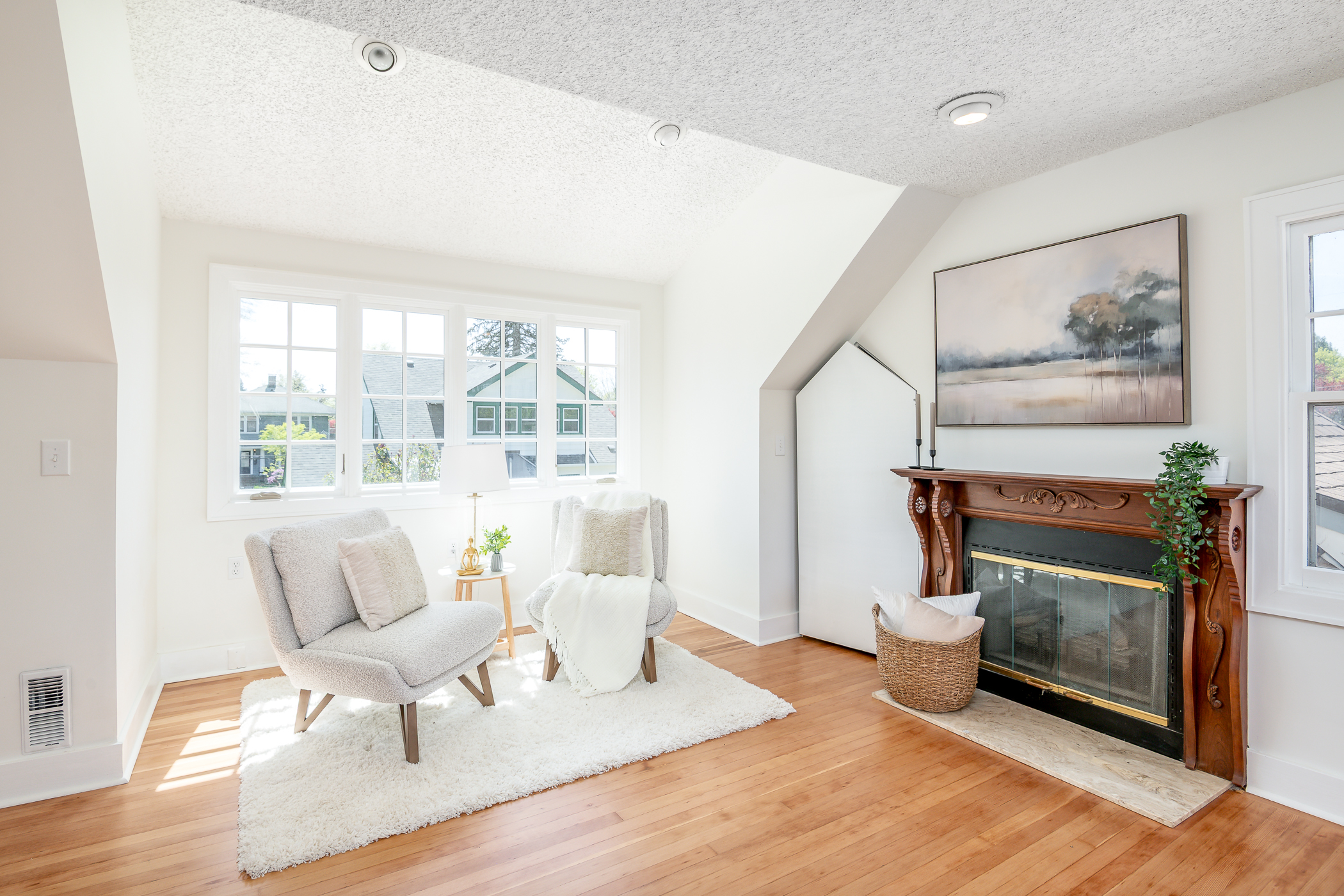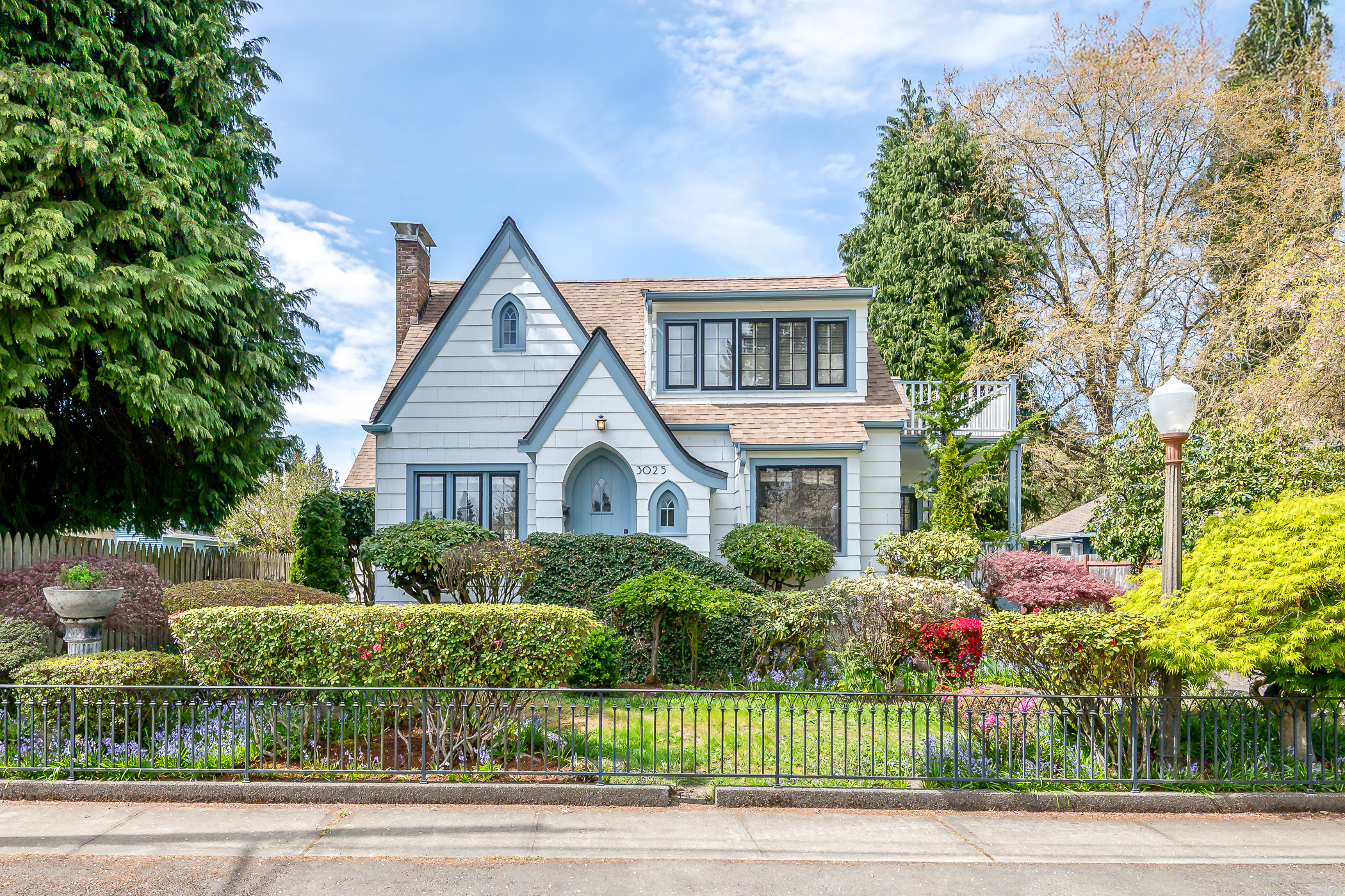 Welcome to this enchanting Storybook Tudor, a captivating gem on the market for the first time in 56 years! This home sits on a charming block with a central playfield, reminiscent of the movie The Sandlot. It also features a 620-square-foot finished carriage house, perfect for an art or music studio, an office, or even a future DADU. The main home is rich in vintage character, with built-ins, arches and angles, picture rail, oak and fir floors, and even a stained-glass door. The kitchen is lovely and timelessly updated, and the formal dining room has a crystal chandelier and a cozy window seat. The living room is a classic beauty with a fireplace at the center and space to entertain. A stunning fireplace anchors the family room, which could easily accommodate a grand piano; French doors lead out to a large covered deck. The main floor bedroom is a welcoming space for guests. Upstairs, you’ll find a roomy primary suite with a fireplace, two bedrooms, a full bath, and lots of storage. Downstairs is a flexible space with three rooms, a 3/4 bath, and a laundry room. Outside, the grounds are a gardener’s delight with mature landscaping that will soon be in full bloom. Recent updates: new interior and exterior paint, brand-new roof, new insulation in the attic, updated upstairs bath, newly refinished oak and fir floors, new Cherry wood in the small upstairs bedroom, and LVP in the basement and carriage house. Don’t miss out on this rare opportunity to own this one-of-a-kind home!