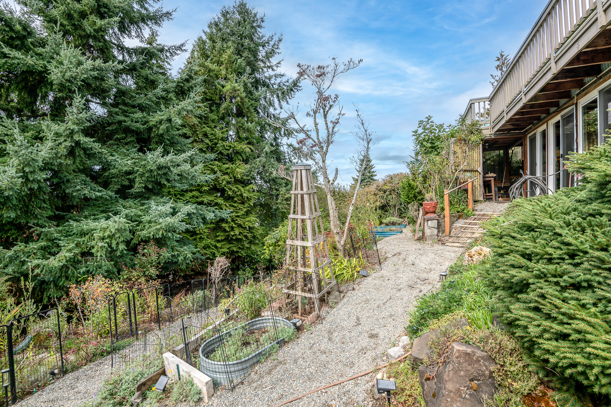 Built in 1963, this special home, still in the original owner’s family, is filled with natural light and warmth. The main floor features a spacious living room, dining area, one bedroom, and bath, as well as a chef’s kitchen equipped with a six-burner gas range, double oven, and ample storage. Downstairs, the primary bedroom opens to a sunroom overlooking the lush yard. A family room, bedroom with an ensuite, full bath, and bonus spaces provide room for gathering, creating, or working from home. The spacious deck offers a gorgeous territorial view with the Sound and bridge in the distance. The terraced backyard is full of beauty with fruit trees and garden boxes. Don’t miss the greenhouse, art spaces, and RV parking with sewer hookup.